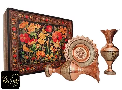 معرفی ست سنبلدان و بشقاب شبکه‌بری مس و خاتم با جعبه دکوپاژ